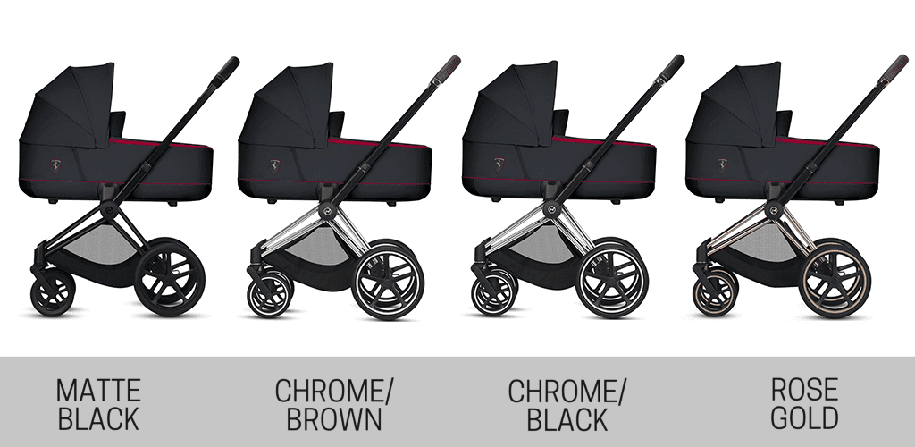 Шасси Priam III сделано из качественных материалов, имеет механизм складывания книжка и очень компактное в сложенном виде. Складывание довольно простое, производится при помощи кнопки на ручке, которая также используется при регулировке высоты ручки для родителей разного роста. Эту коляску можно использовать как всесезонную, ведь колеса здесь довольно большого размера, и есть амортизация на каждом из них. Колеса не подвержены проколам, передние - поворотные, с возможностью фиксации. Фиксация коляски производится ножным тормозом, есть большая корзина для необходимого или покупок. Ну и самое главное, шасси Cybex Priam III бывает четырех цветов: rosegold, chrome/brown, chrome/black, matt black.