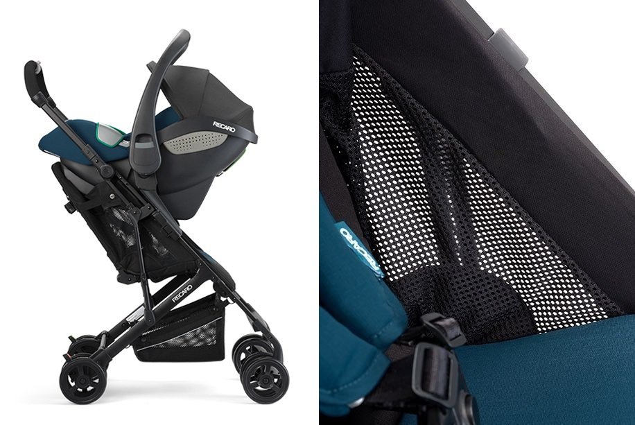 В коляске Easylife Elite 2 есть сетчатые вставки для лучшей вентиляции в жаркую погоду. Свежий воздух будет обдувать ребенка, это не позволит ему перегреться. По сравнению с моделью Easylife 2, у этой коляски увеличенный козырек от непогоды и солнца, который имеет дополнительную раскладывающуюся секцию. Рекаро Изилайф Элит 2, при наличии специальных адаптеров, может использоваться как система для путешествий. Адаптер закрепляется на шасси коляски, а далее на него можно установить автокресло-люльку для новорожденного малыша. Наличие этой возможности расширяет сроки использования коляски, позволяя перевозить ребенка сразу после рождения, а не с 6 месяцев.